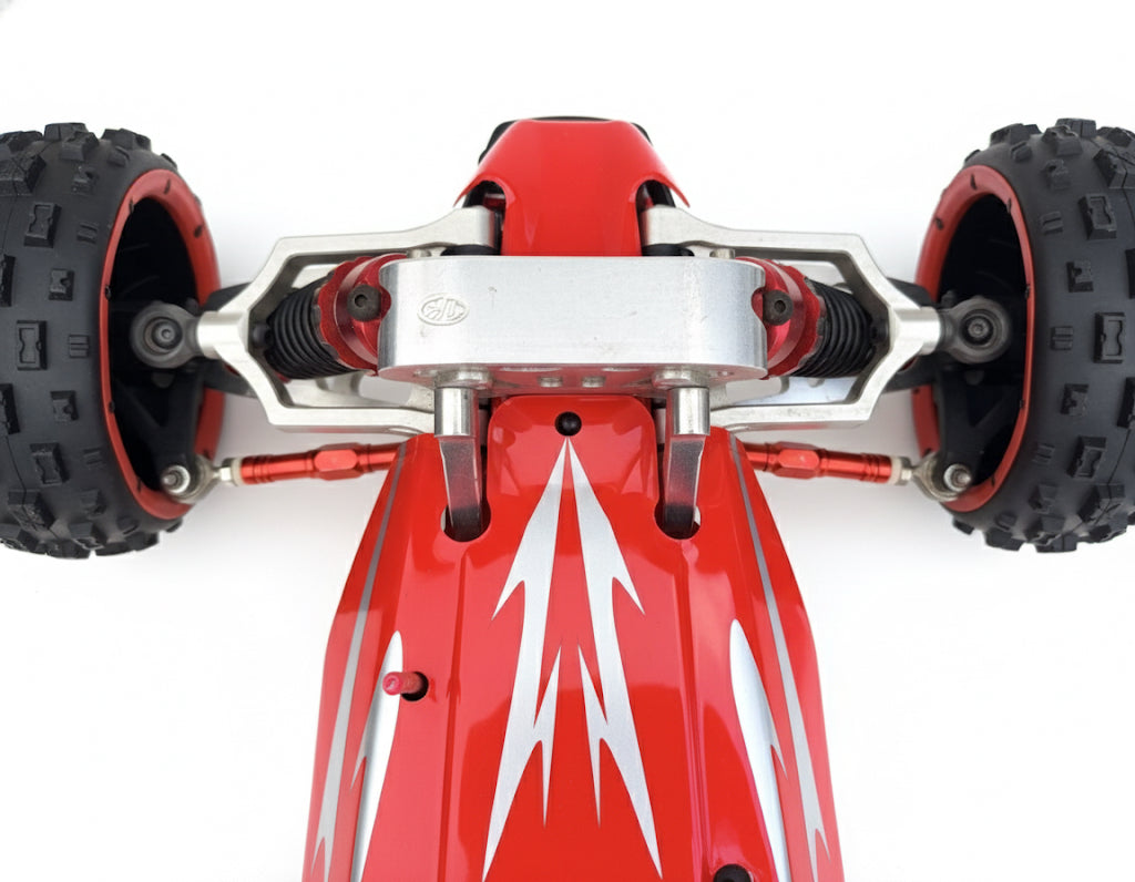 Heavy-Duty Suspension: High-volume, adjustable aluminium shocks with Red accents, soaking up the biggest jumps without dramas.